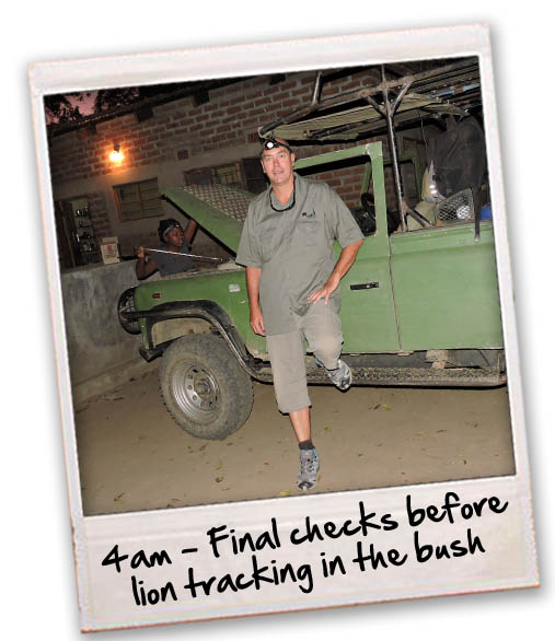 Anyway we eventually lost the pride after an hour of following them as they move so fast through very difficult terrain which is impossible to cross by Land Rover. We could hear them for a while and tried to follow the calling growls they make but they were just too quick. Anyway we decided to stop at midnight and set up camp and our team leader advised we sleep on top of the vehicles as it was too dangerous to sleep in tents on the ground. The moon was full last night and this means most predators can see well and therefore all go out hunting which would have made us very venerable on the ground.